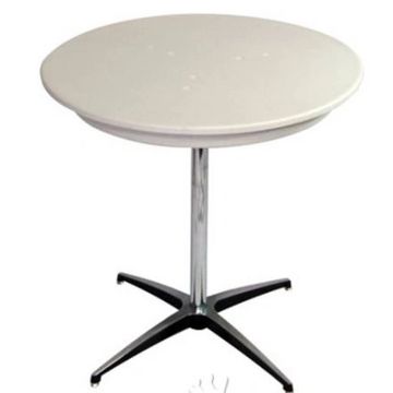 No linens needed on this modern cabaret table. Use with chairs. Accommodates 2 dining or 4 for cocktails. Height of 30'' tall.